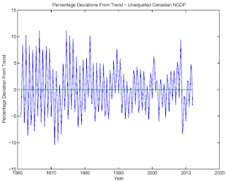 So, if variability about trend in NGDP is a bad thing, why should we not worry about the seasonal variability? I can't see how any answer that the NGDP targeters would give us to that question could make any sense. But they should have a shot at it.